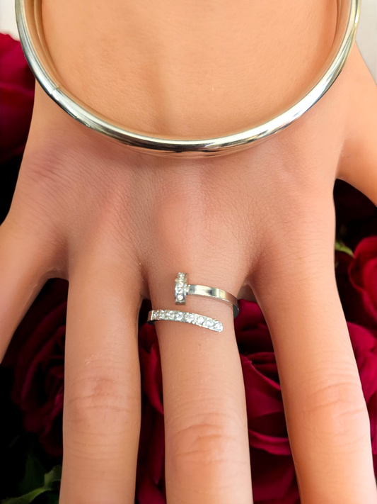 Bague Argenté croix strass