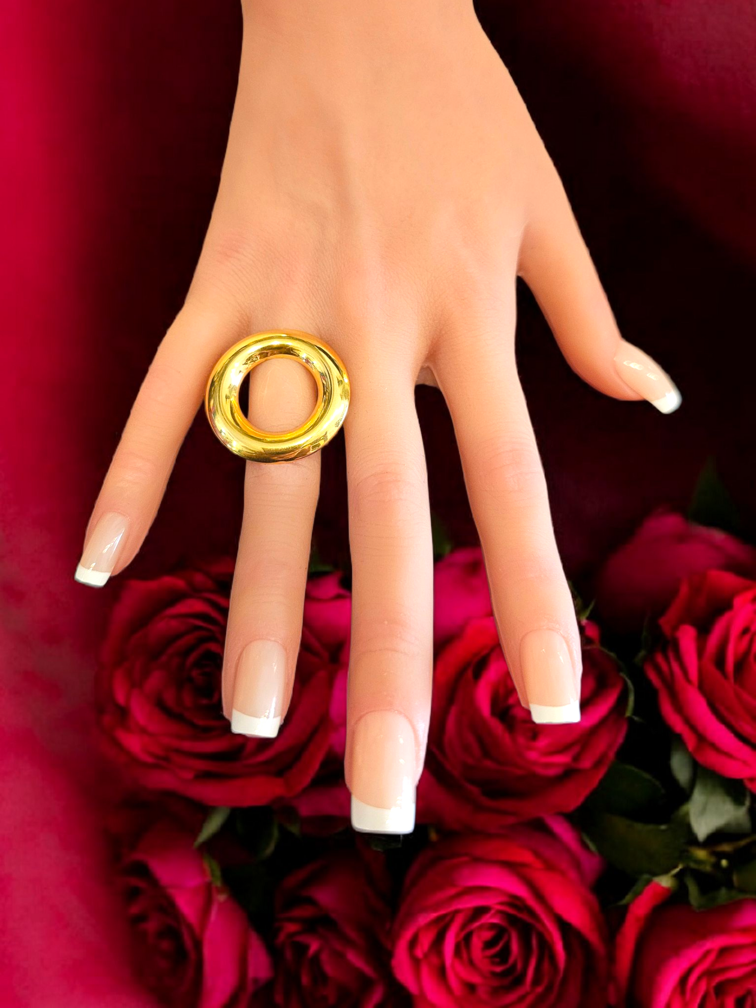 Succombez au charme audacieux de notre bague ovale dorée . En acier inoxydable