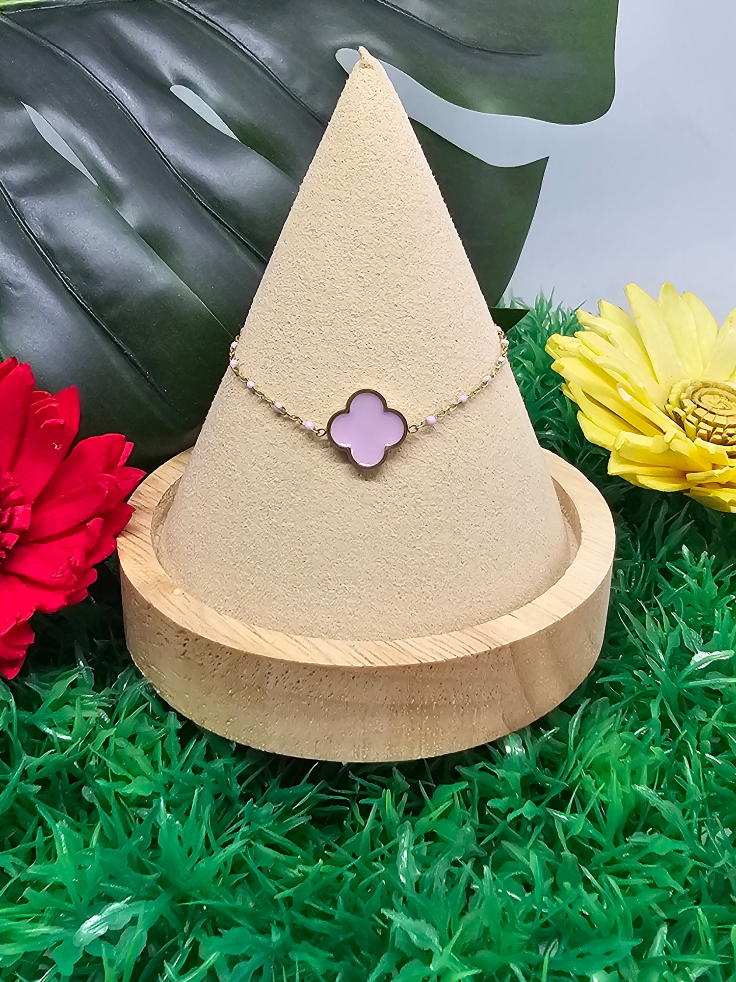Bracelet en acier inoxydable avec un trèfle Lavande