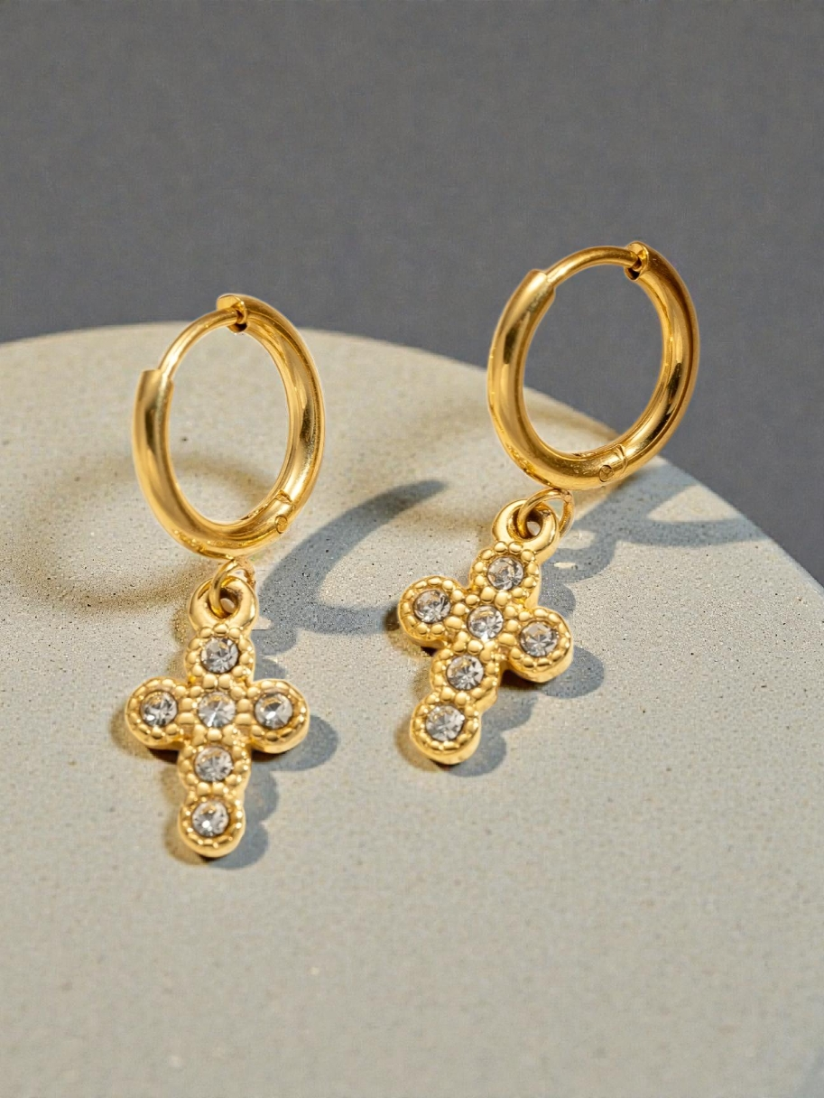 Créoles dorées croix serties – Brillance sacrée, élégance spirituelle et style intemporel