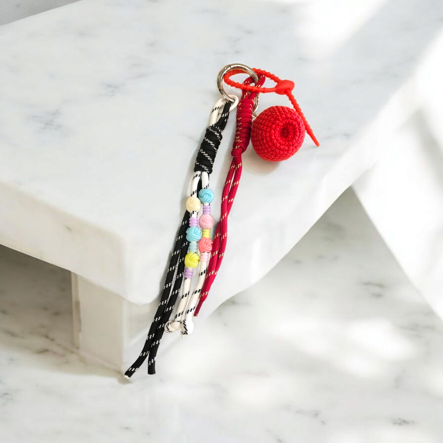 Apportez une touche d’été et de fantaisie à votre sac avec ce charmant grigri Ce bijou de sac se compose de plusieurs breloques délicatement sélectionnées : une fraise,et divers cordes. Chaque élément, dans des tons rouge et noir
