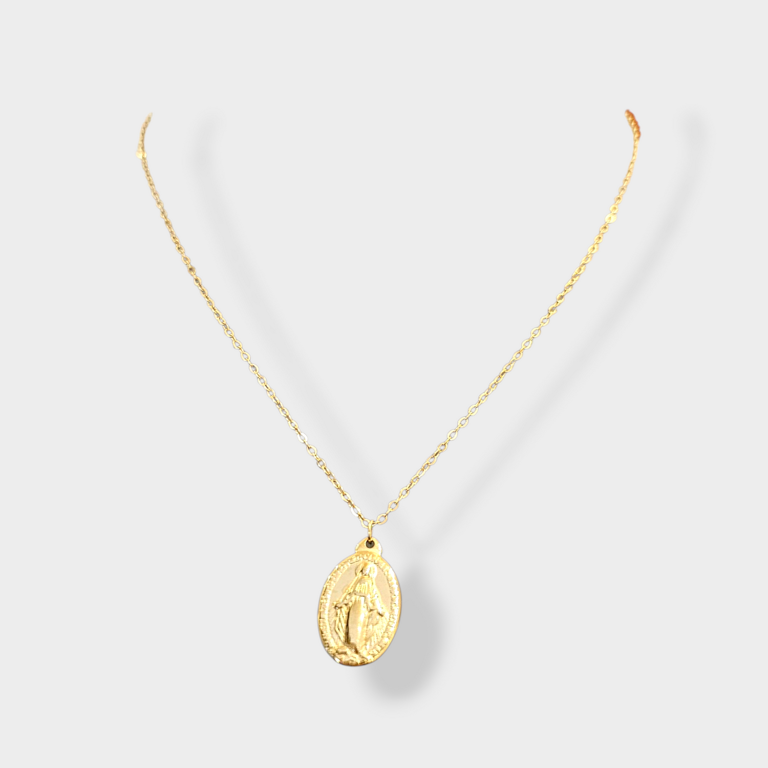 Sublimez votre style avec ce collier doré élégant orné d’une médaille ovale.