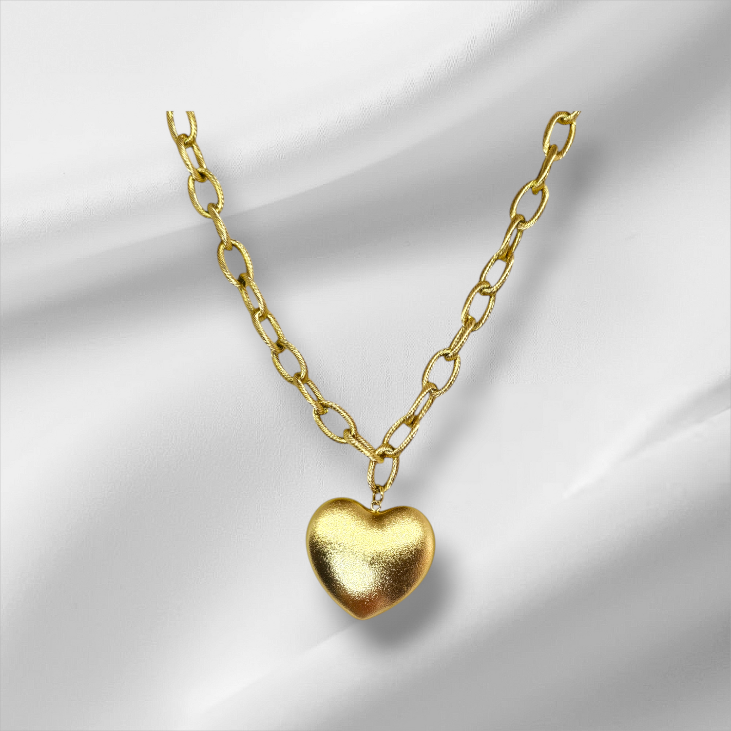 Ajoutez une touche d'audace et de style à votre collection d'accessoires avec ce magnifique collier. Le pendentif en forme de coeur , en acier inoxydable. Il est suspendu à une chaine grosses mailles