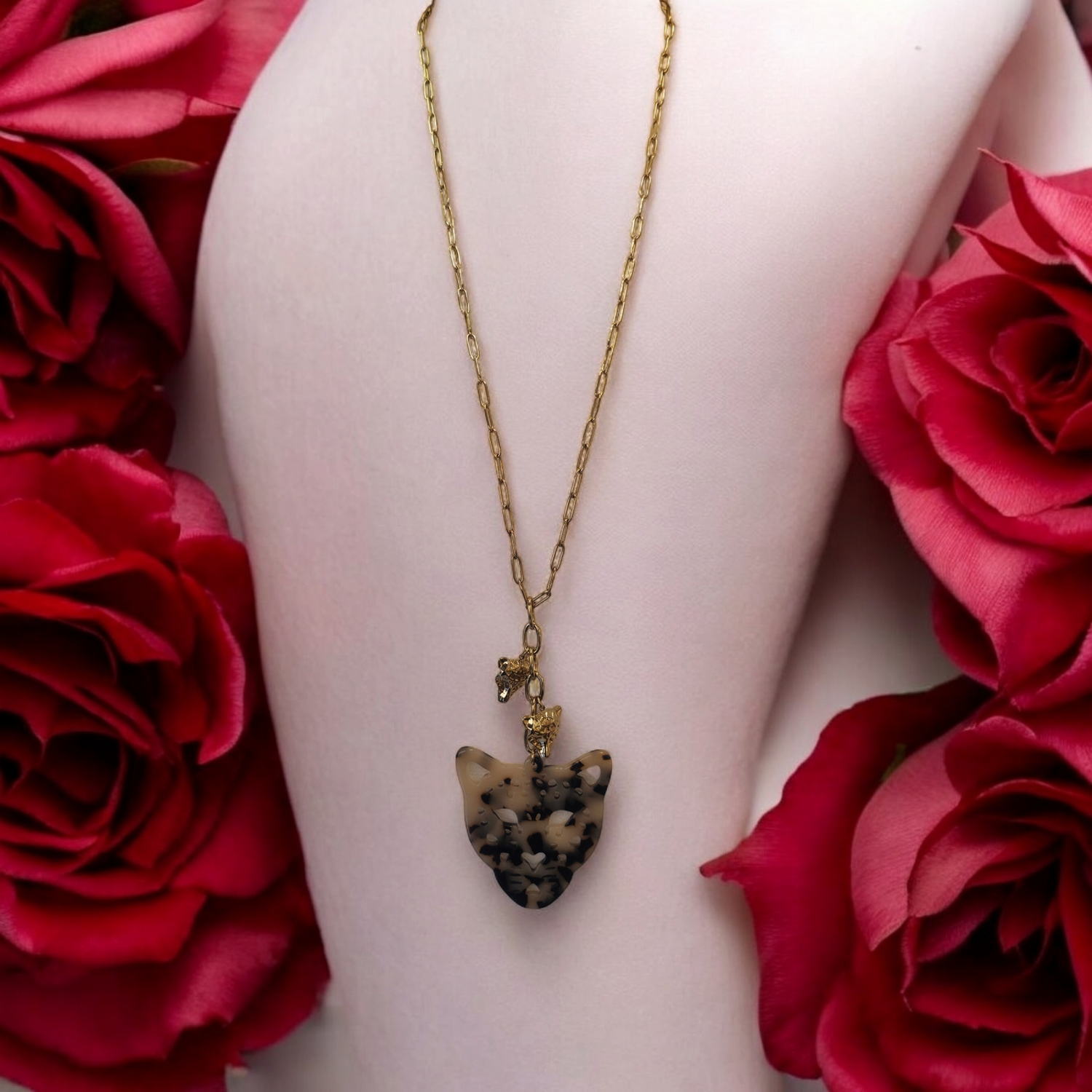 Ajoutez une touche d'audace et de style à votre collection d'accessoires avec ce magnifique sautoir. Le pendentif en forme de panthère , en acier inoxydable. Il est suspendu à une chaine grosses mailles